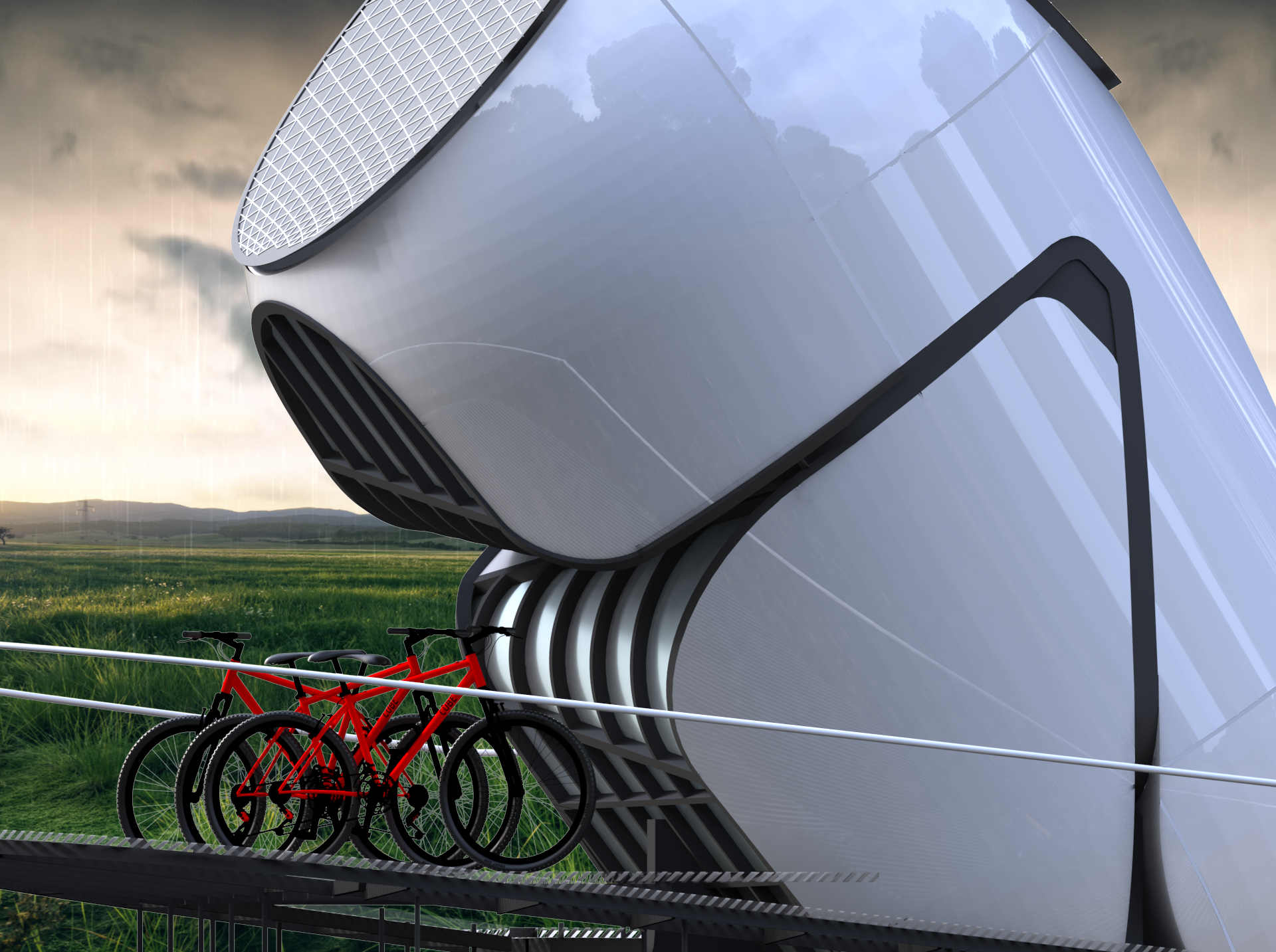 Primarily stationed near agricultural and resource-rich towns, the VELOPOD provides facilities for food preparation, sleeping, bike maintenance, and communal gathering. Constructed from recycled materials, it presents a minimal yet intentional design aimed at becoming an iconic symbol for the European Union.